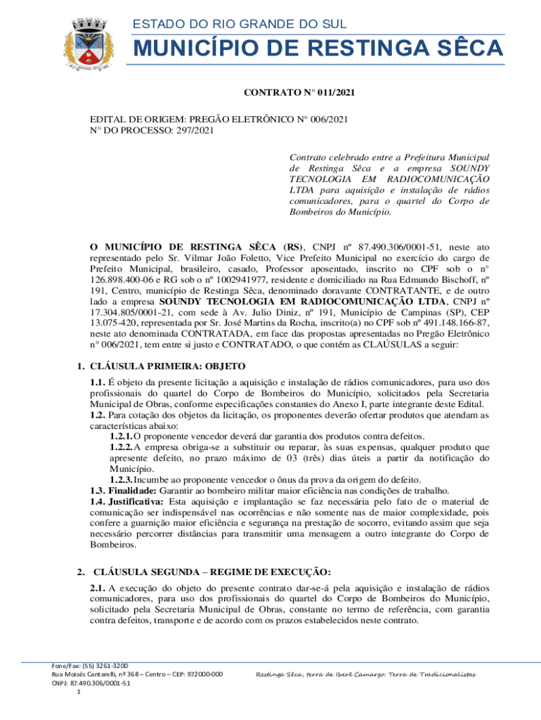 ESTATE DO RIO GRANDE DO SULMUNICPIO DE RESTING SCA