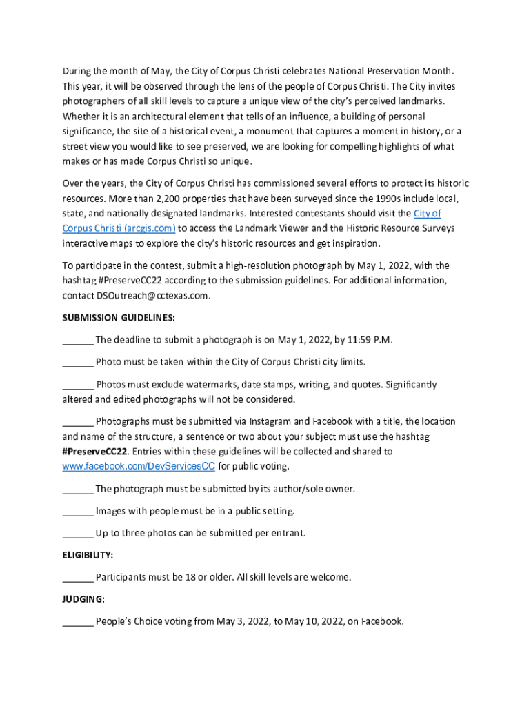 During the month of May, the City of Corpus Christi celebrates National Preservation Month. This year, it will be observed through the lens of the people of Corpus Christi. The City invites photographers