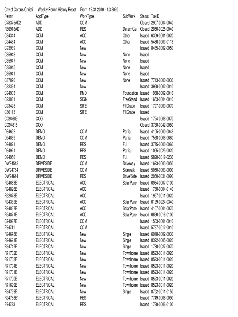 City of Corpus Christi Permit C78375AD2 R86918AD1 C94344 C94464 C93939 C85948 C85947 C85945 C85941 C87870 C92334 C94903 C93881 C93428 C86113 CO94683 CO94815 D94662 D94869 D94821 D94921 D94956 DW94543