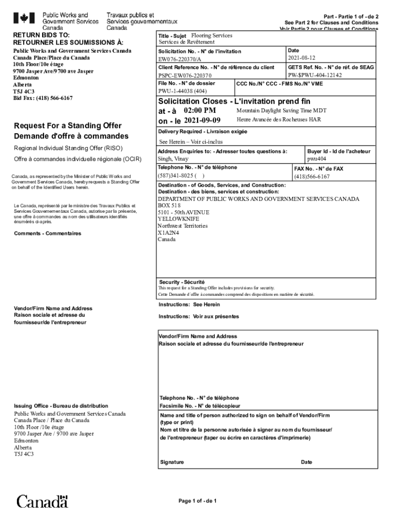 RETURNER LES COMMISSIONS :Title Suet Flooring ServicesPublic Works and Government