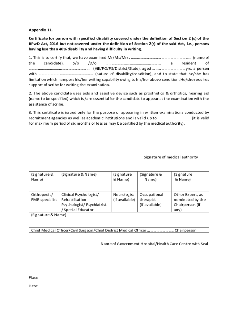 Get the free Appendix 11. Certificate for person with specified disability ...