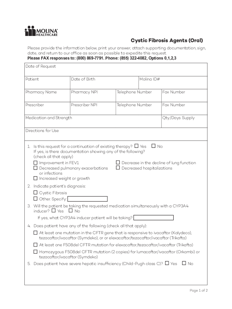 Get the free Cystic Fibrosis Agents (Oral). Provider request form