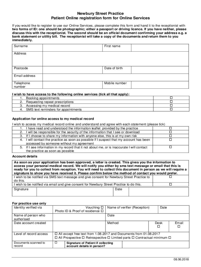 If you would like to register to use our Online Services, please complete this form and hand it to the receptionist with