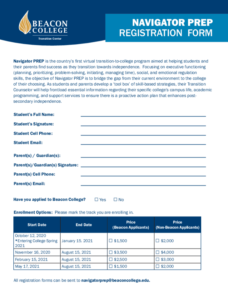 Get the free NAVIGATOR PREP REGISTRATION FORMBeacon College