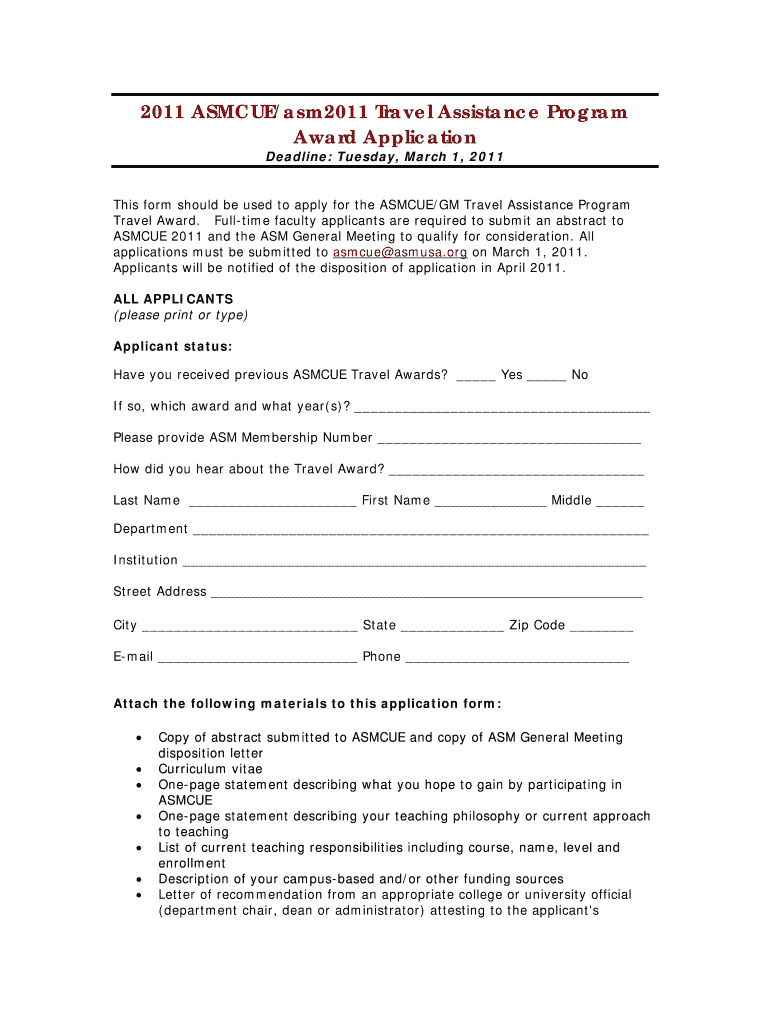 Get the free ASMCUE-GM Travel Assistance Program Award Application.doc - asmcue