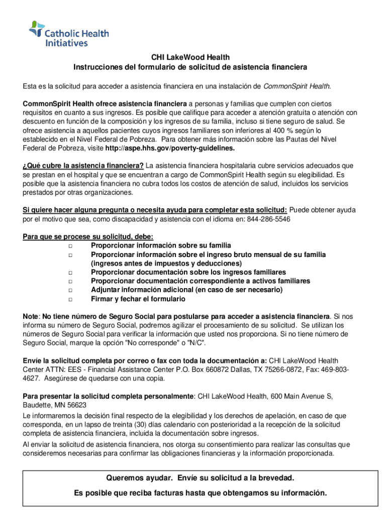 ESTA BS la solicited para accede an asistencia financier en RNA installation de CommonSpirit Health.