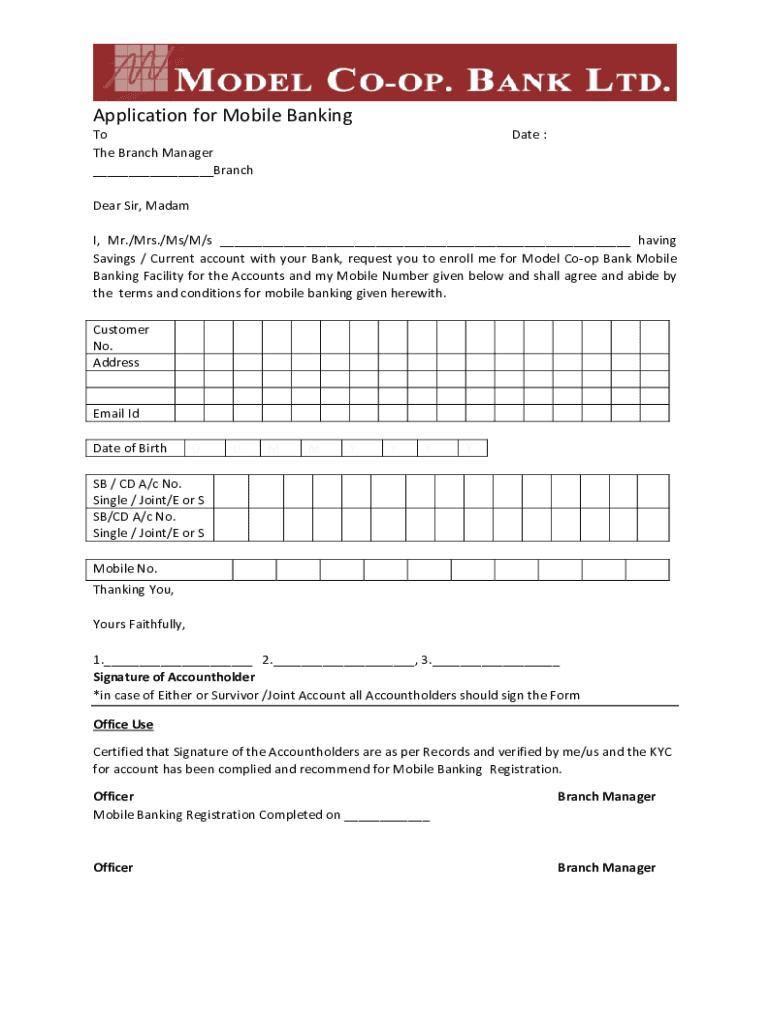 Savings / Current account with your Bank, request you to enroll me for Model Coop Bank
