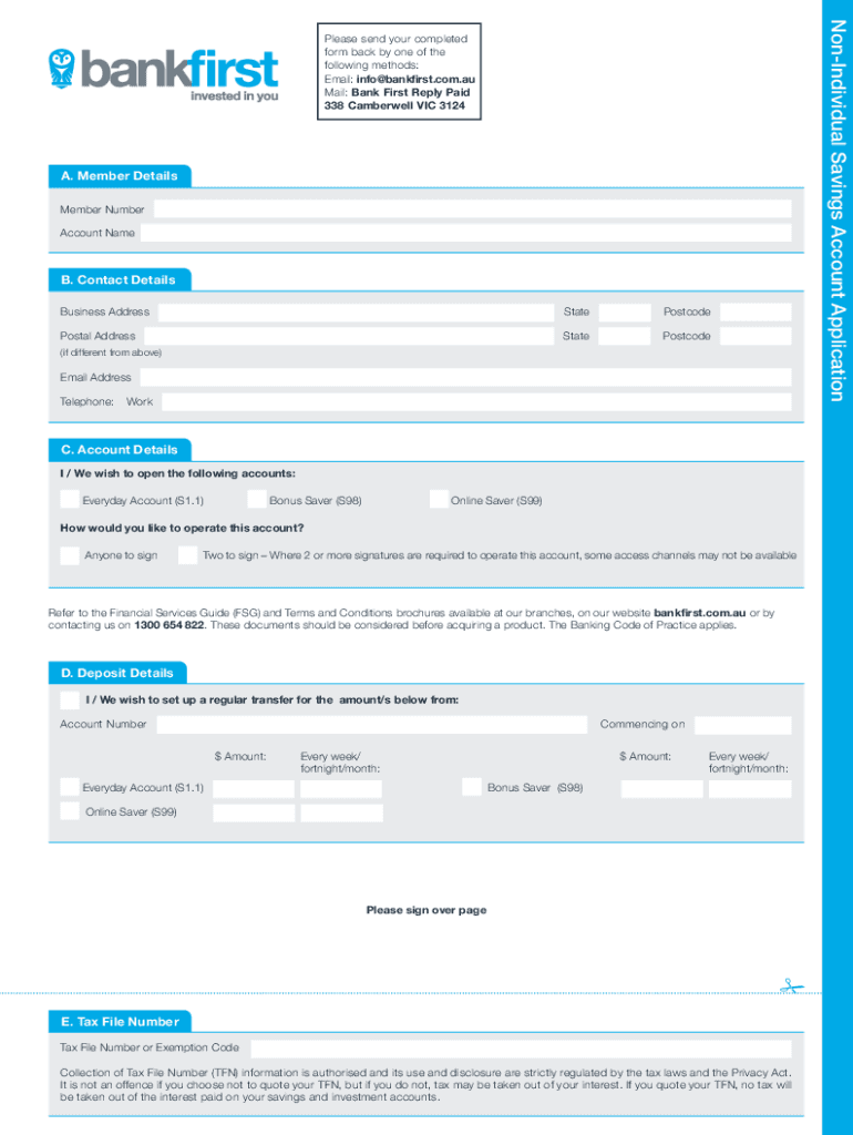 Get the free Non-Individual S avings A ccount A pplication - Bank First