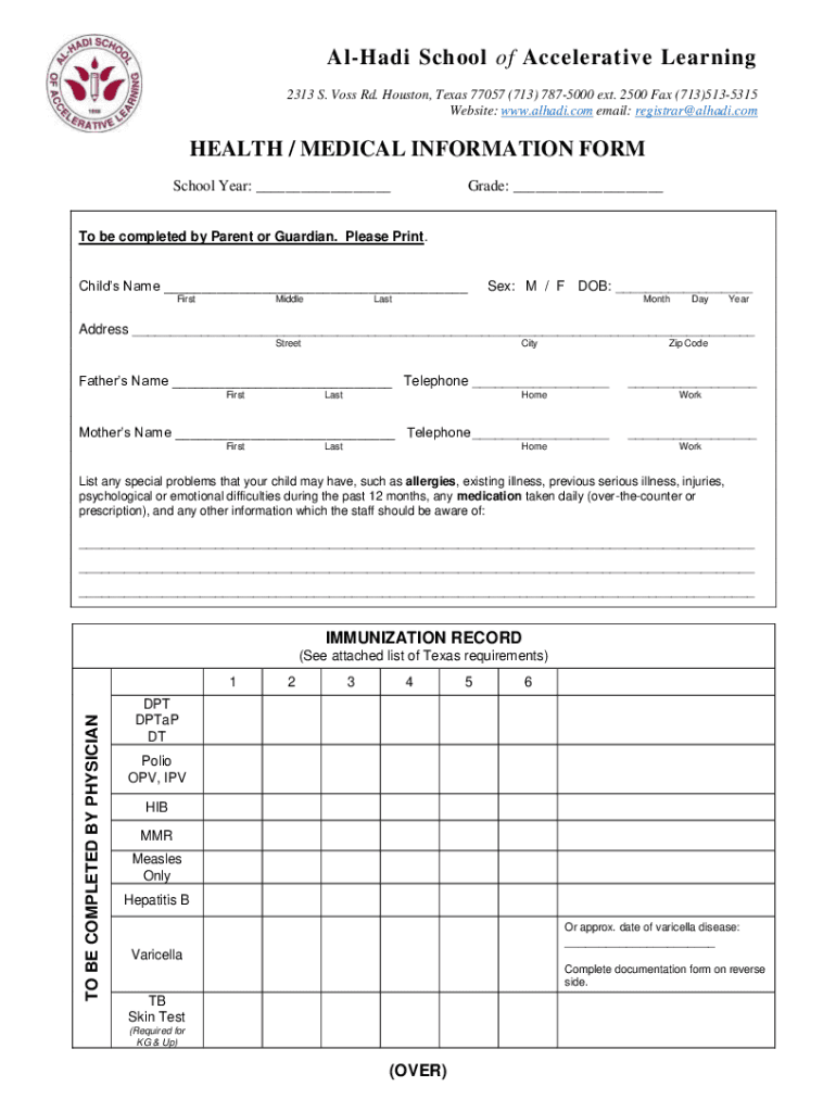 Get the free health / medical information form - Alhadi school