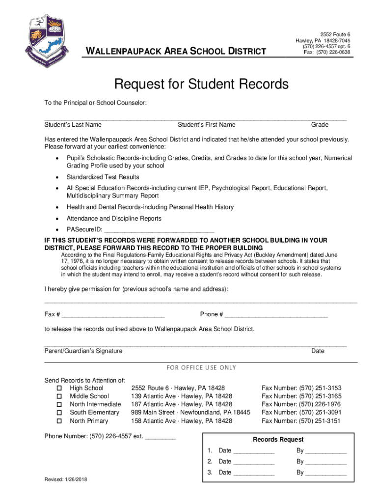 WALLENPAUPACK AREA SCHOOL DISTRICT2552 Route 6