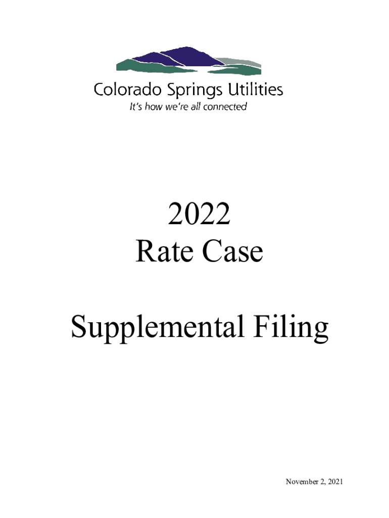 Supplemental Filing November 2, 2021Date:November 2, 2021To:Members of City Councilor:Scott Shira, Interim Pricing and Rates ManagerSubject:SUPPLEMENTAL INFORMATION FOR COLORADO SPRINGS