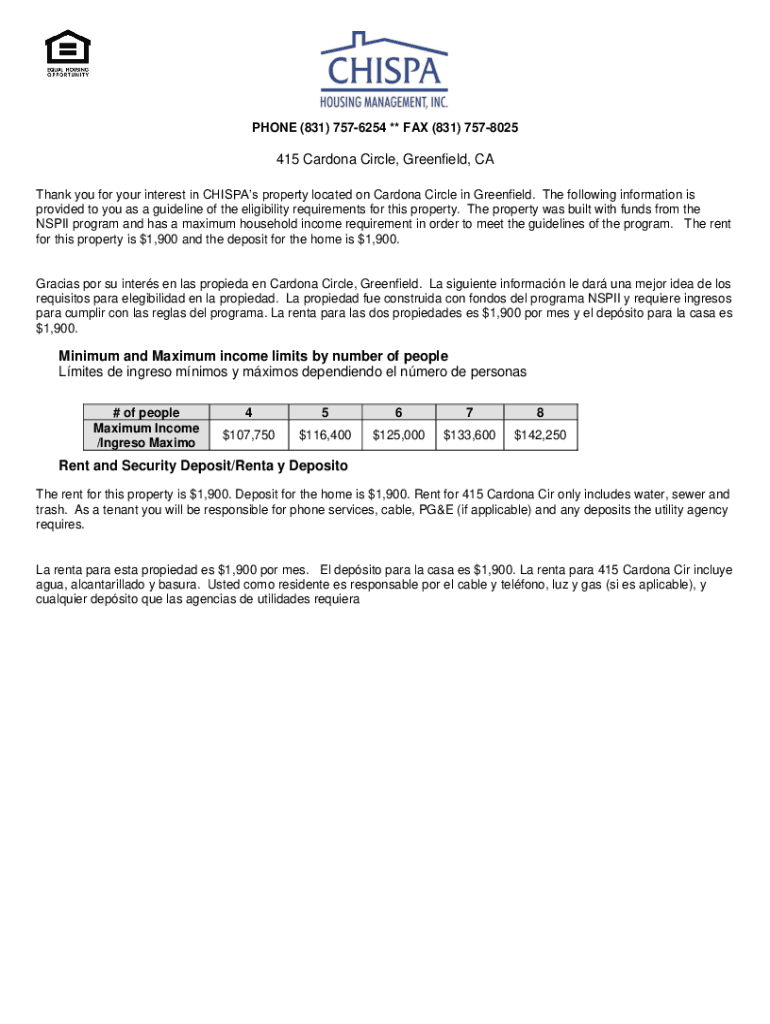 Obtener el gratis 415 Cardona Circle, Greenfield, CA Maximum income limits ...