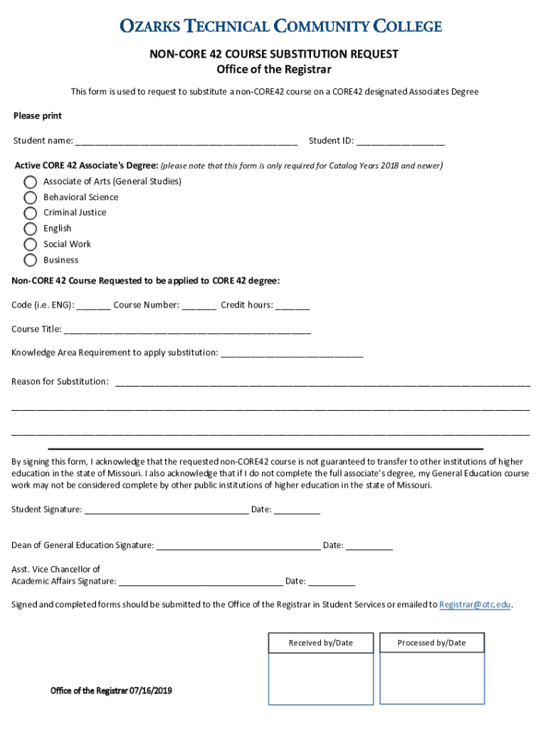 Edit your non-core 42 course substitution form online