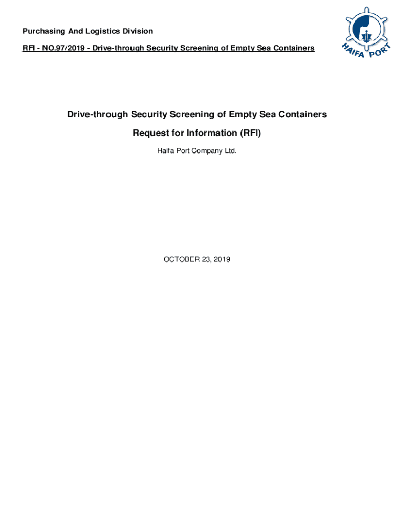 Purchasing And Logistics Division RFI NO.97/2019 Drive through Security Screening of Empty Sea ContainersDrivethrough Security Screening of Empty Sea Containers Request for Information (RFI) Haifa