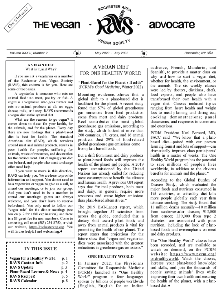 33 r u THE veGanVolume XXXIII, Number 2May 2022 July 2022A VEGAN DIET What is it, and Why? A VEGAN Diet you are not a vegetarian or a member of the Rochester Area Vegan Society (RATS), this column