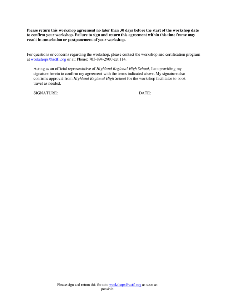 Get, Create, Make and Sign actfl on-site workshop agreement
