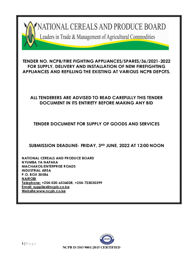 The purpose of tender no ncpbfire fighting is to provide NCPB with a transparent and competitive process for acquiring fire fighting equipment or services.