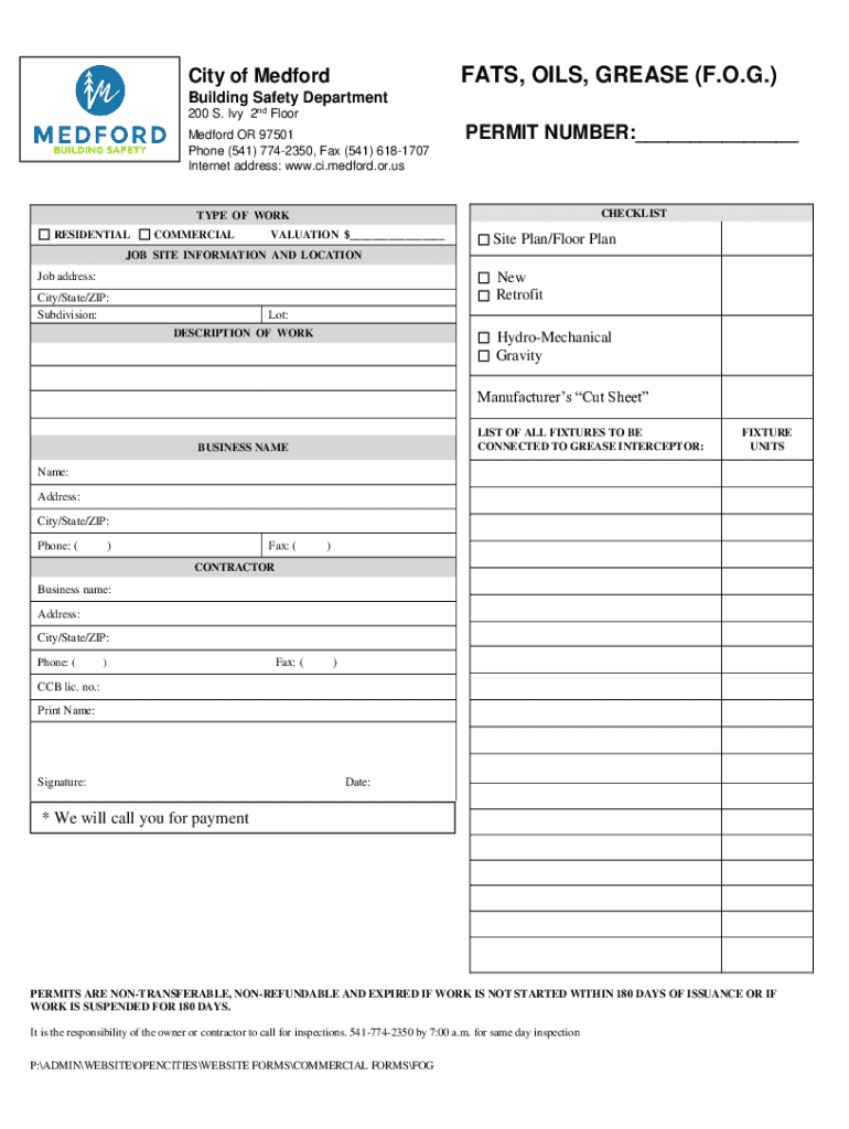 FATS, OILS, GREASE (F.O.G.) City of Medford