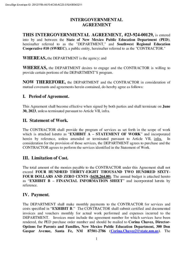 AGREEMENTS INTERGOVERNMENTAL AGREEMENT, #2392400129, is entered