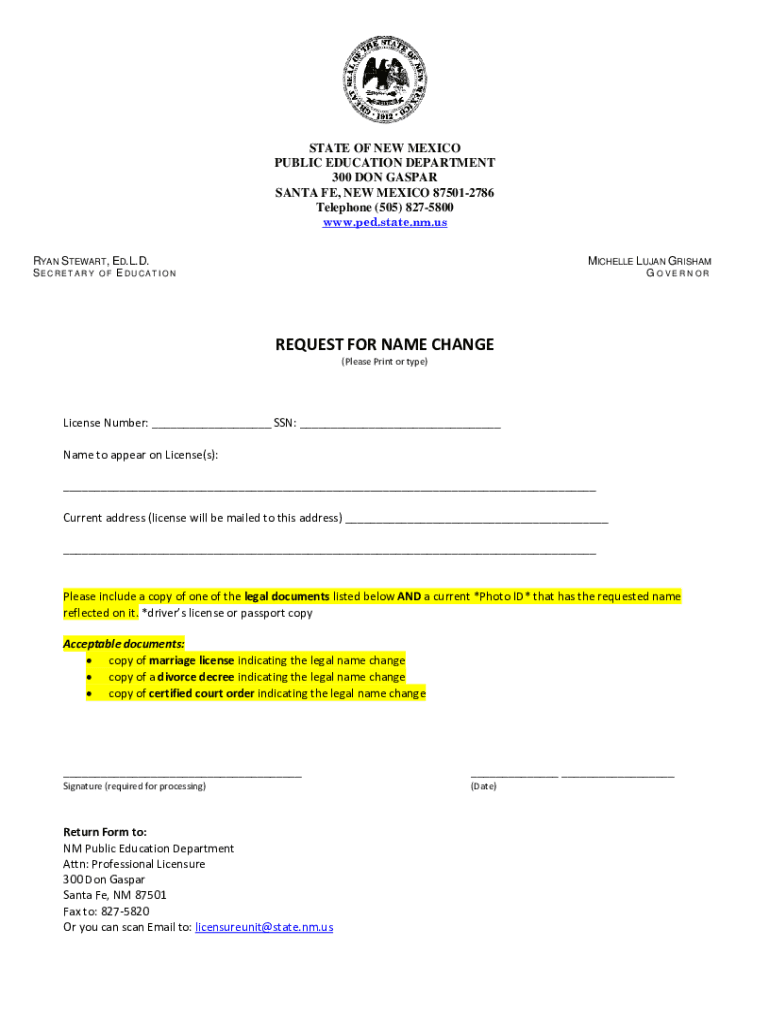 STATE OF NEW MEXICO PUBLIC EDUCATION DEPARTMENT 300 DON GASPAR SANTA FE, NEW MEXICO 875012786 Telephone (505) 8275800 www.ped.state.nm.usRYAN STEWART, ED. L.D.MICHELLE HUMAN GRISHAMSECRETARY OF EDUCATIONGOVERNORREQUEST