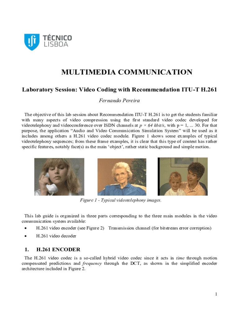 MULTIMEDIA COMMUNICATION Laboratory Session: Video Coding with Recommendation ITU H.261 Fernando Pereira The objective of this lab session about Recommendation ITU H.261 is to get the students familiar