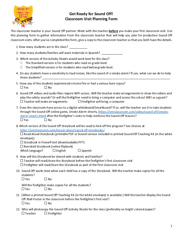 Get the free Get Ready for Sound Off! Classroom Visit Planning Form