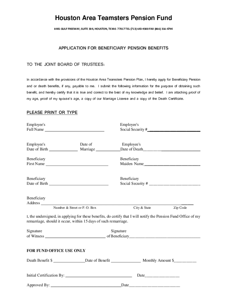 Get the free Houston Area Teamsters Pension Fund - Beneficiary Application