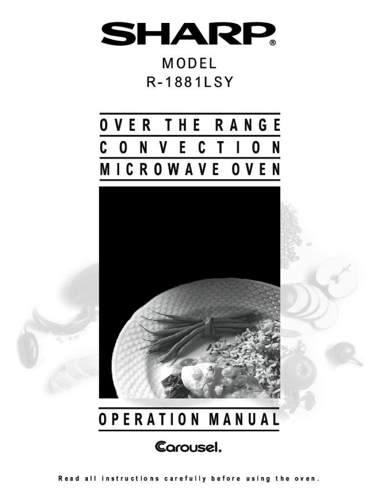 MODEL R1881LSYOVER THE RANGE C O N V E C T I O N MICROWAVE VENERATION Manured all instructions carefully before using the oven. FOR CUSTOMER ASSISTANCE To aid in reporting this microwave oven in case