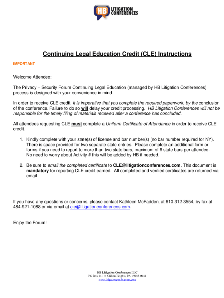 Continuing Legal Education Credit (CLE) Instructions IMPORTANTWelcome Attendee: The Privacy + Security Forum Continuing Legal Education (managed by The Litigation Conferences) process is designed