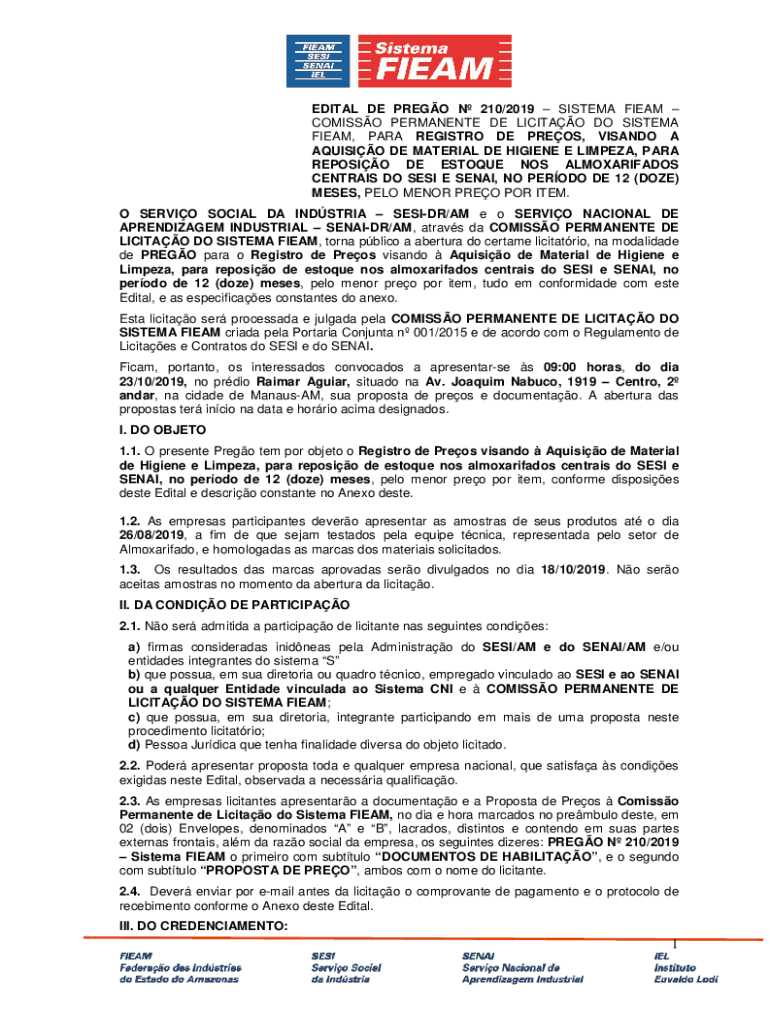 Obtenha o gratuito EDITAL DE PREGO 210 - (REGISTRO DE PREO) - MATERIAL DE HIGIENE E LIMPEZA PARA ...