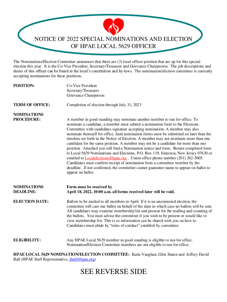 Get the free Notice of Special Nominations and Election of HPAE Local ...