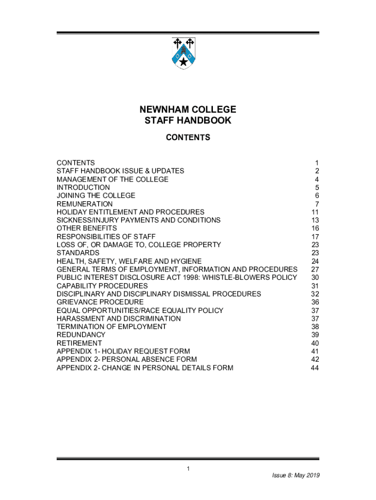 Newnham College Staff Handbook is not the form you're looking for?Search for another form here.