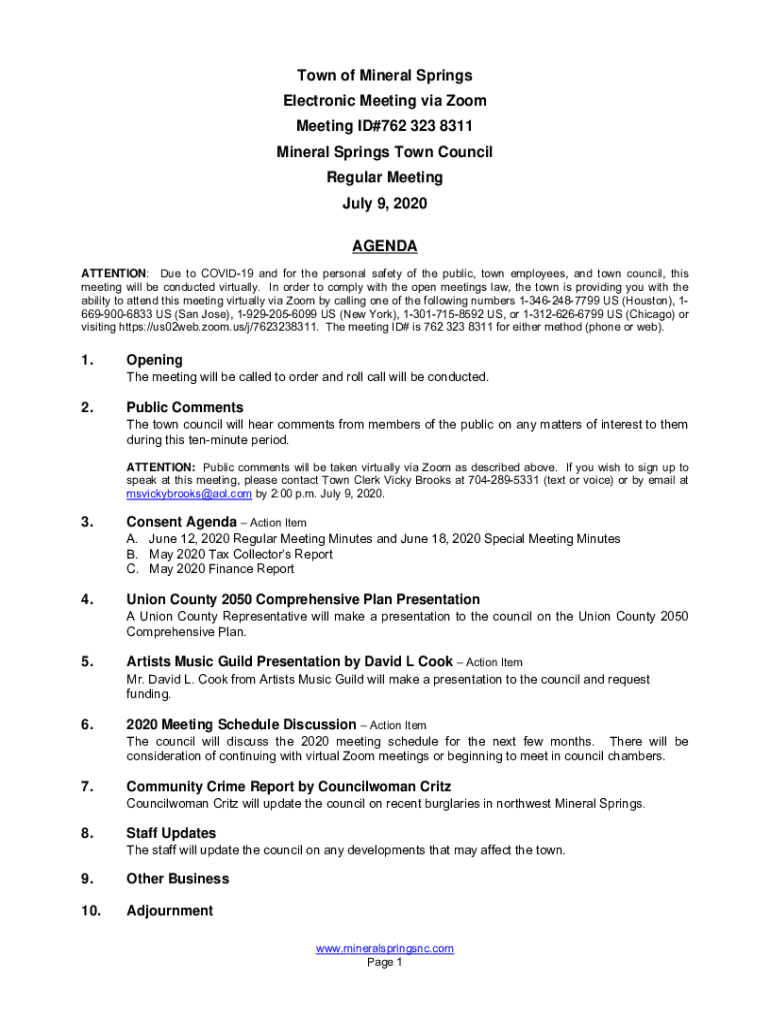 Get the free July 9, 2020 AGENDA - Town of Mineral Springs