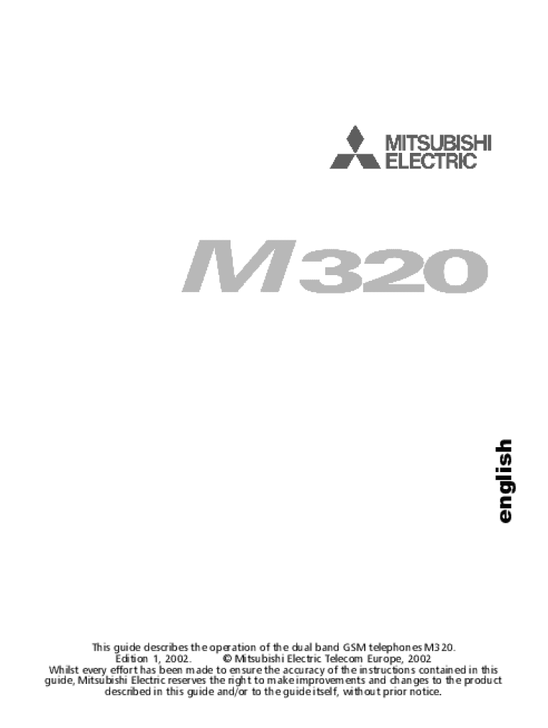 English This guide describes the operation of the dual-band GSM telephones M320. Edition 1, 2002. Mitsubishi Electric Telecom Europe, 2002 Whilst every effort has been made to ensure the accuracy