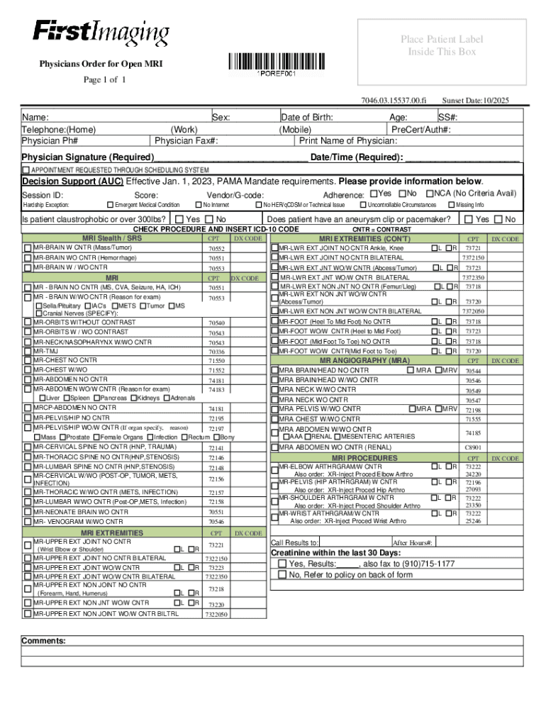 Get the free Physicians Order for Open MRI - FirstImaging. Template