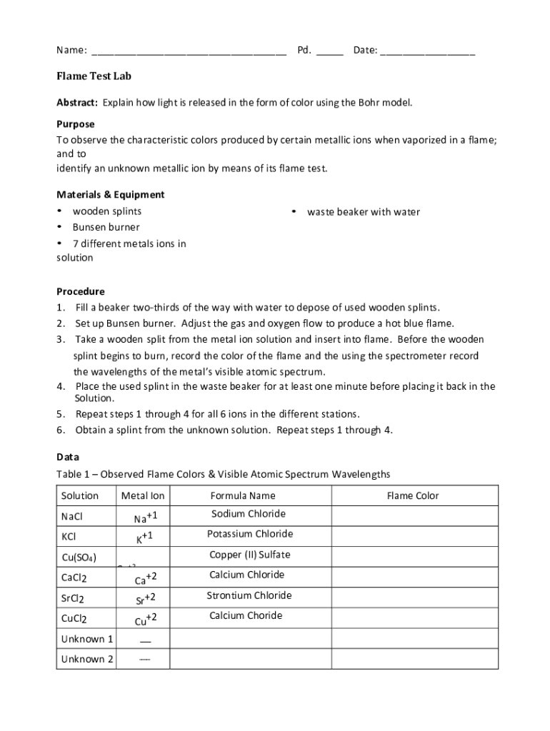 Name: ___ Pd. Date: ___Flame Test Lab