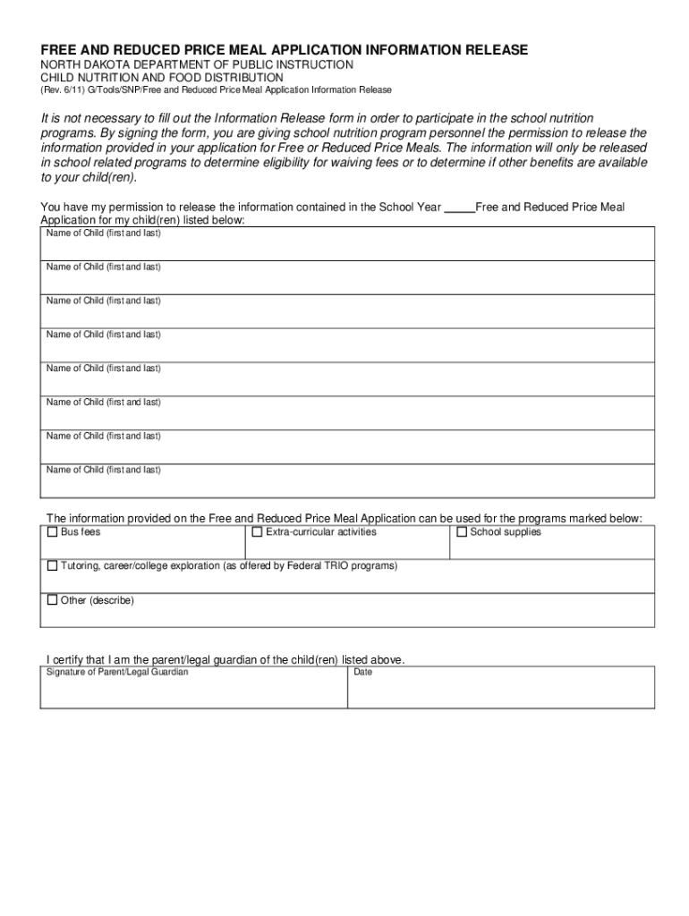Information such as children's names, ages, dietary restrictions, and any allergies must be reported on children need healthy meals forms.
