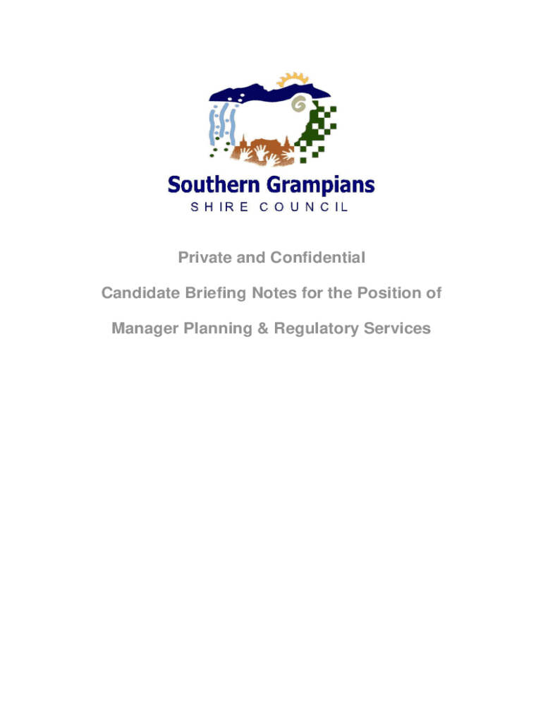 Private and Confidential Candidate Briefing Notes for the Position of Manager Planning & Regulatory ServicesAbout the Southern Grampians Shire Council Southern Grampians Shire Council, located in