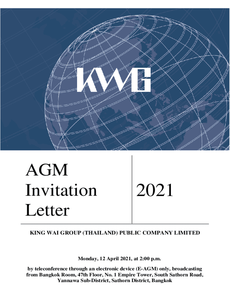 AGM Invitation Letter2021KING WAS GROUP (THAILAND) PUBLIC COMPANY LIMITED Monday, 12 April 2021, at 2:00 p.m. by teleconference through an electronic device (EAM) only, broadcasting from Bangkok Room,