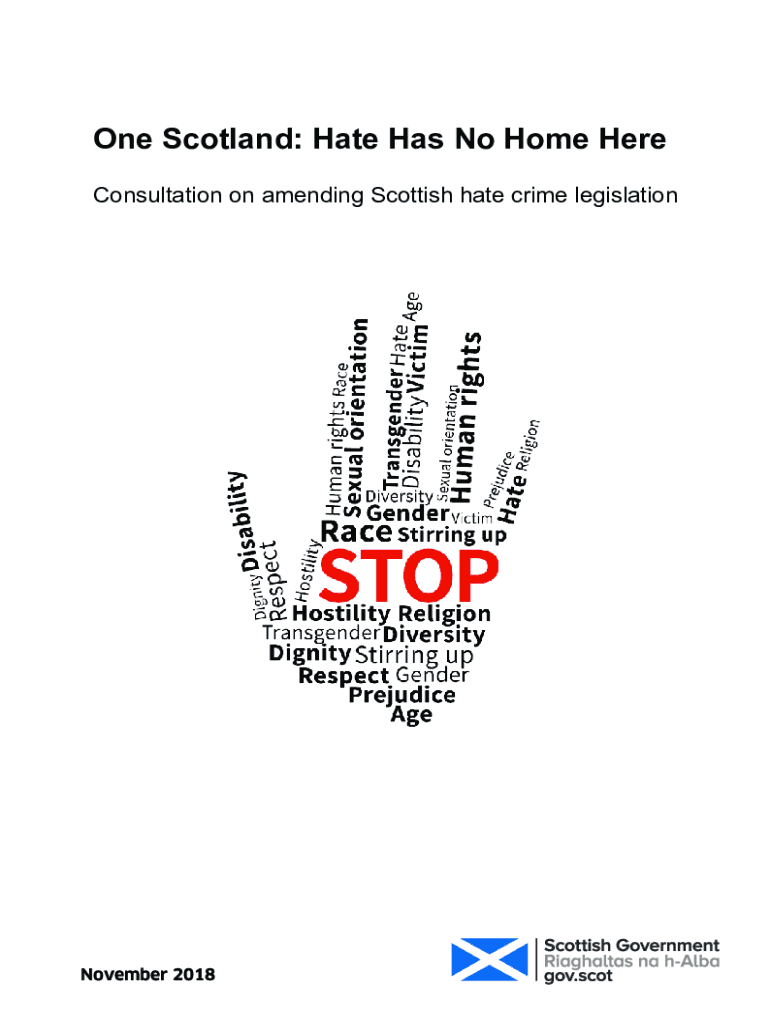 One Scotland: Hate Has No Home Here Consultation on amending Scottish hate crime legislation November 2018 November 2018ContentsPageMinisterial Foreword1Introduction2Part One Consolidating and Modernizing
