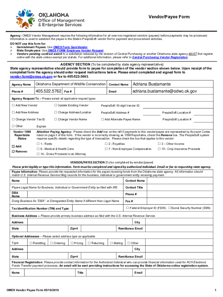 Solicitation Cover Page For Minor Projects Under Statuary Amount OKLAHOMA DEPARTMENT OF WILDLIFE CONSERVATION DATE OF SOLICITATION made as of the 28th day of May in the year 2021. Solicitation Information