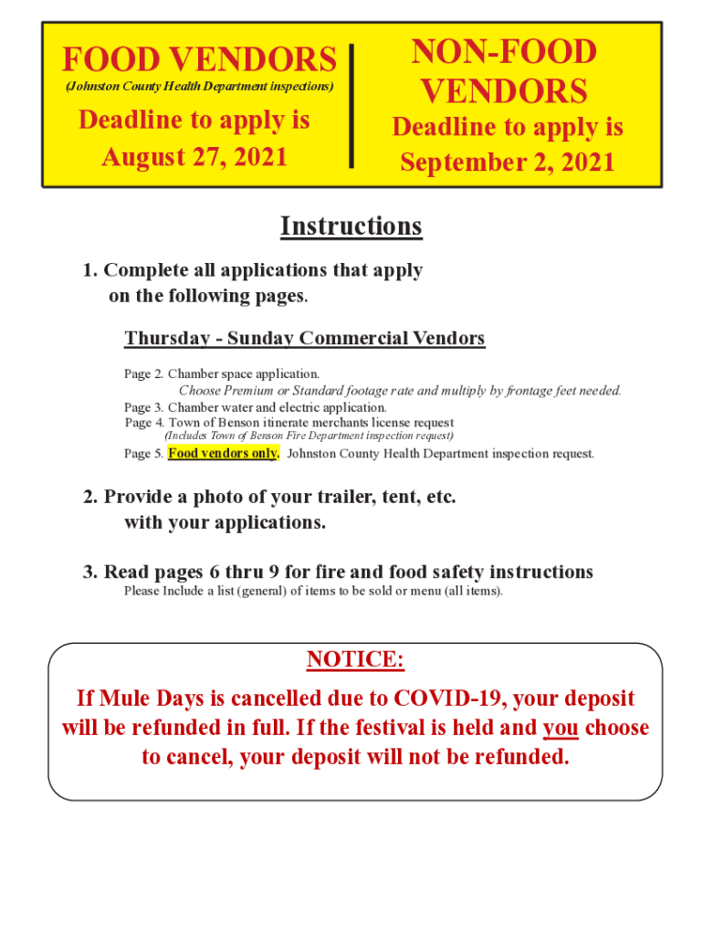 NONFOOD VENDORSFOOD VENDORS (Johnston County Health Department inspections)Deadline to apply is August 27, 2021Deadline to apply is September 2, 2021Instructions 1. Complete all applications that