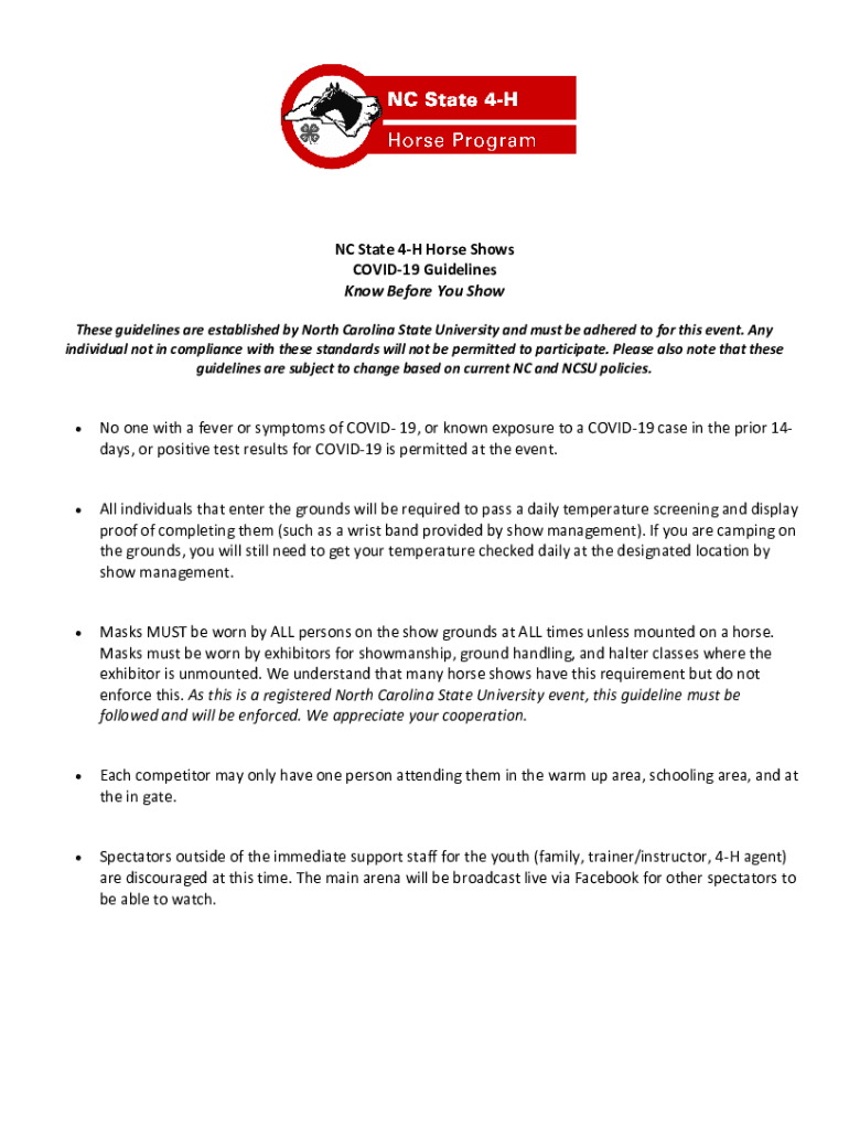 Get the free NC State 4-H Horse Shows COVID-19 Guidelines Know ...
