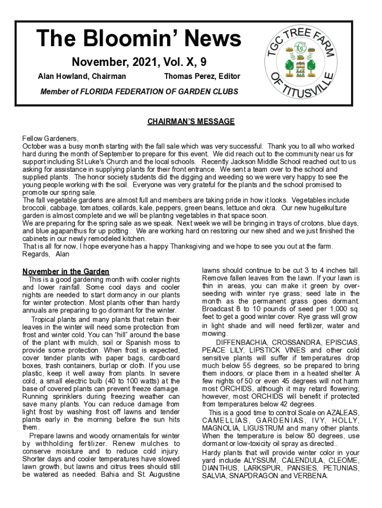 Alan Howland, Chairman Thomas Perez, EditorMember of FLORIDA FEDERATION OF GARDEN CLUBSCHAIRMANS MESSAGE