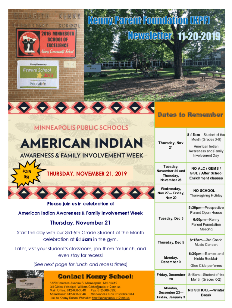 11202019Dates to Remember 8:15amStudent of the Thursday, Nov 21THURSDAY, NOVEMBER 21, 2019Tuesday, November 26 and Thursday, November 28 Wednesday, Nov 27 Friday, Nov 29Please join us in celebration