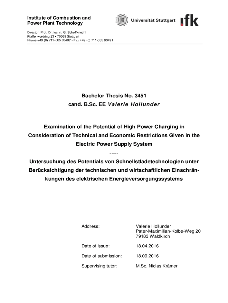 Institute of Combustion and Power Plant Technology Director: Prof. Dr. tech. G. Scheffknecht Pfaffenwaldring 23 70569 Stuttgart Phone +49 (0) 711685 63487 Fax +49 (0) 711685 63491Bachelor Thesis No.