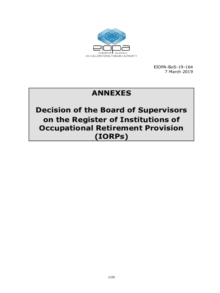EIOPABoS19164 7 March 2019ANNEXES Decision of the Board of Supervisors on the Register of Institutions of Occupational Retirement Provision (Corps)1/26CONTENTS ANNEX I: DATA ............................................................................................................................................