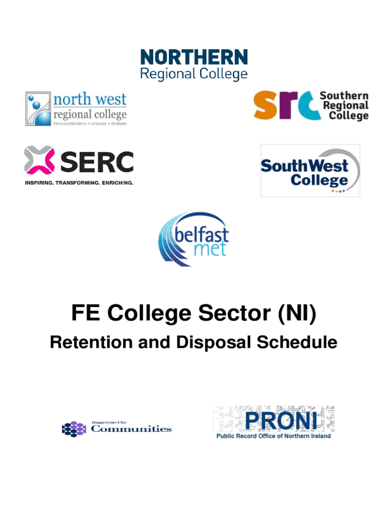 FE College Sector (NI) Retention and Disposal Scheduled College Sector (NI) Disposal and Retention SchedulePrepared as required by the Public Records Act (Northern Ireland), 1923 and in accordance