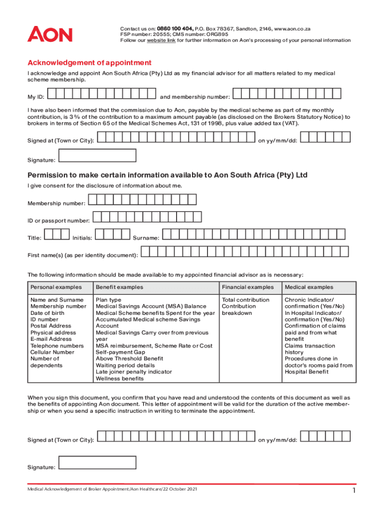 Get, Create, Make and Sign aon south africa pty