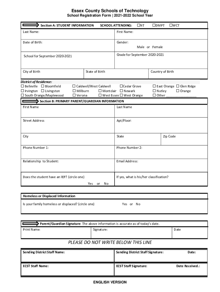 School Registration Form | 20212022 School Year